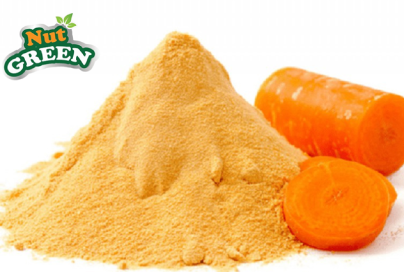 - Bột cà rốt nguyên chất được làm từ củ cà rốt tự nhiên, 100% cà rốt không pha tạp, chất bột mịn, màu cam, mùi thơm nhẹ. Bột cà rốt thường được dùng để tạo màu các món bánh, rau câu, làm bột ăn dặm cho trẻ, Ngoài ra, bột cà rốt còn dùng để làm mặt nạ kết hợp với sữa chua không đường, mật ong giúp da sáng mịn, Bột cà rốt được sản xuất tại công ty Cổ phần Nutgreen fresh với dây chuyền sản xuất đảm bảo chất lượng và hiệu quả.